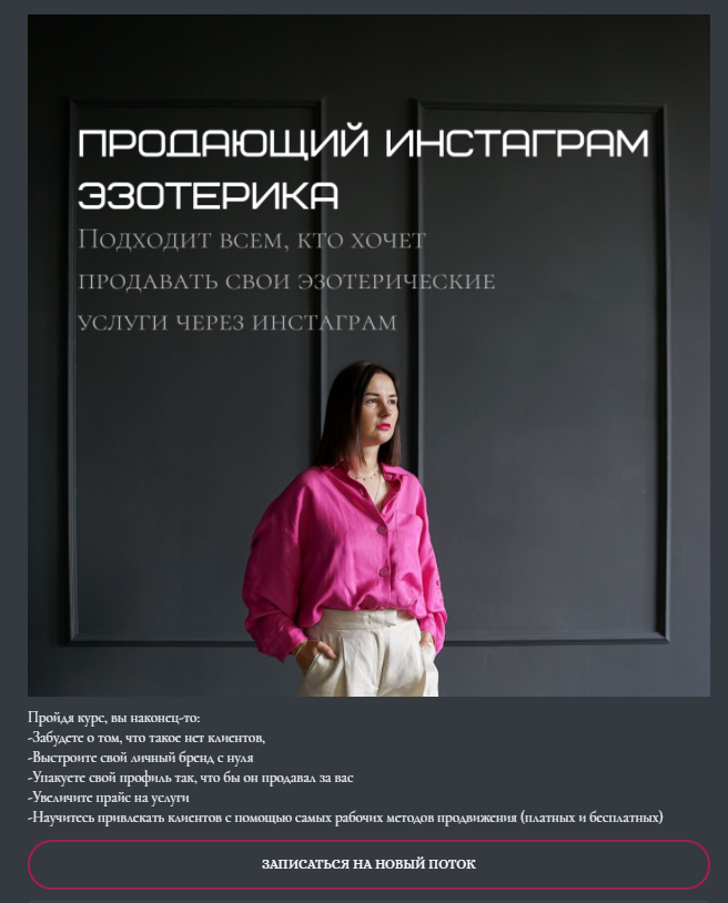 Добрый день! Прошу организовать складчину на курс "Продающий Инстаграм эзотерика" от Екатерины Климовой (kati.klimovaa)🙏